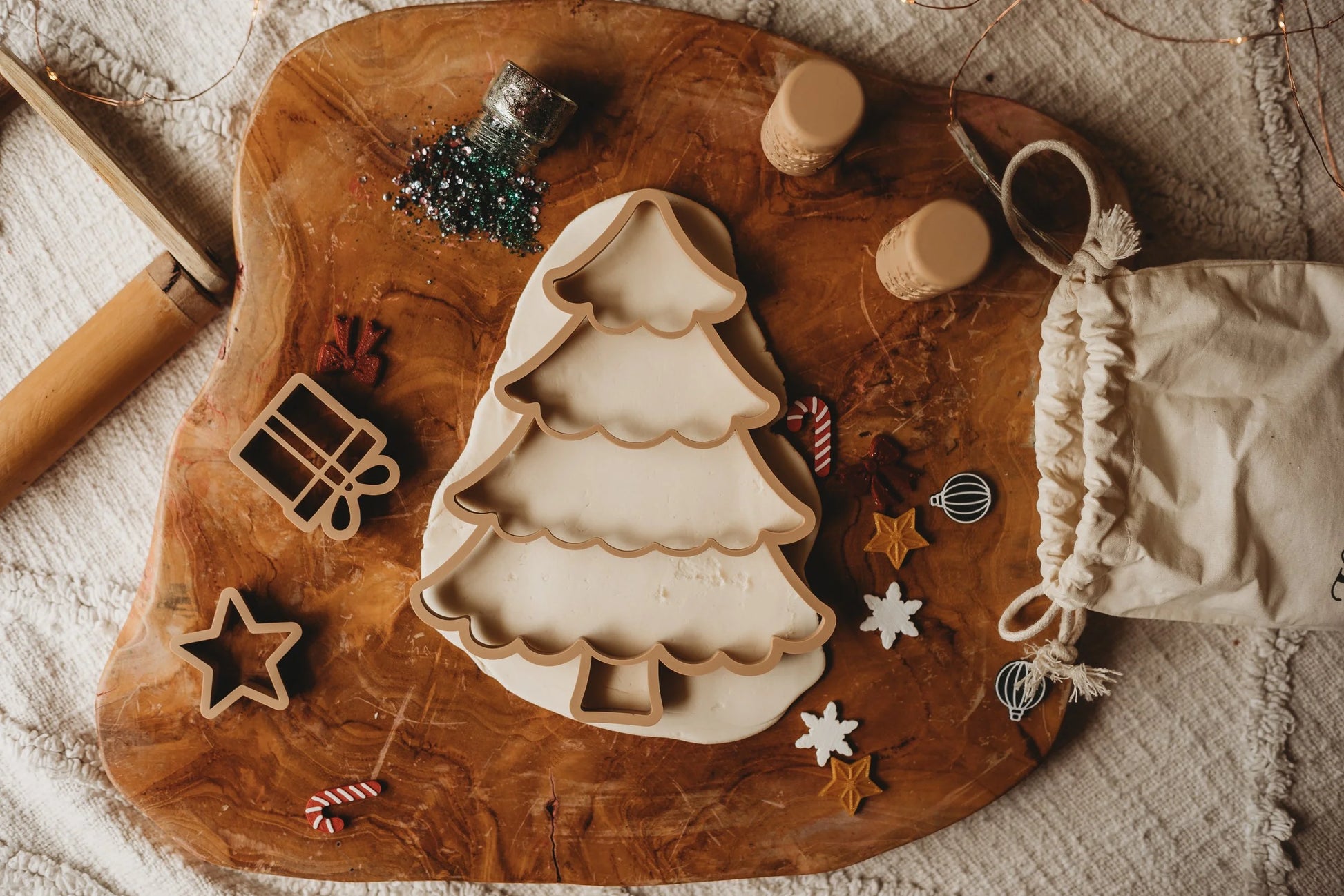 Little hands can press and shape their very own playdough Christmas tree, then decorate it with gingerbread men, candy canes, stars, baubles, bows, and snowflakes. Complete with a star for the top and present cutters for under the tree, this set invites endless festive, sensory fun.